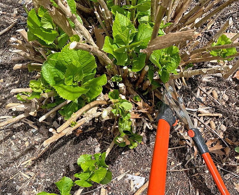 Most of the mophead and lacecap hydrangeas on the Cape are still alive, but they won’t bloom well in the summer of 2023. Here are some photos that will guide you in your cleanup and pruning.