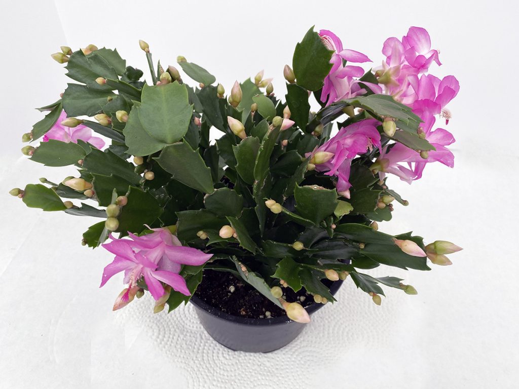 The common name of “cactus” sometimes causes people to treat these plants like the drought-tolerant, full sun loving cacti that thrive in the desert. Schlumbergera, however, are epiphytes (meaning they grow on trees) from Brazilian rainforests, so they need more humidity and less intense sun than typical cacti. A bright location is fine, and they thrive when put out into dappled shade for the summer.