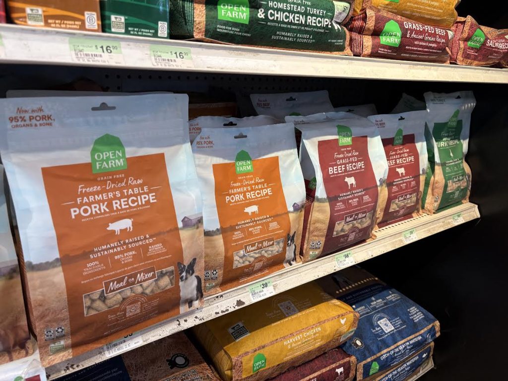 Katie: Since working here and researching all the different pet foods and manufacturers and ingredients and sourcing and how they make the products, I have switched my dogs to full raw. Which means 80% muscle meat, 10% organ meat, and 10% bone. The cats eat raw probably once a week and then only canned, and if I give them anything crunchy it’s freeze-dried raw. No kibble. Cats are not designed to eat carbohydrates…they are what we call an “obligate carnivore” which means they cannot live without [animal] protein.
